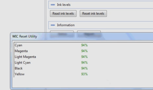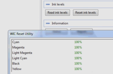 Step 4, click “Reset ink levels”, then you will find all colors return to 100%.