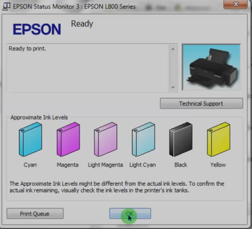 Step 5, you will find the Epson Status Monitor shows “Ready” again. That means the printer is good to use now.